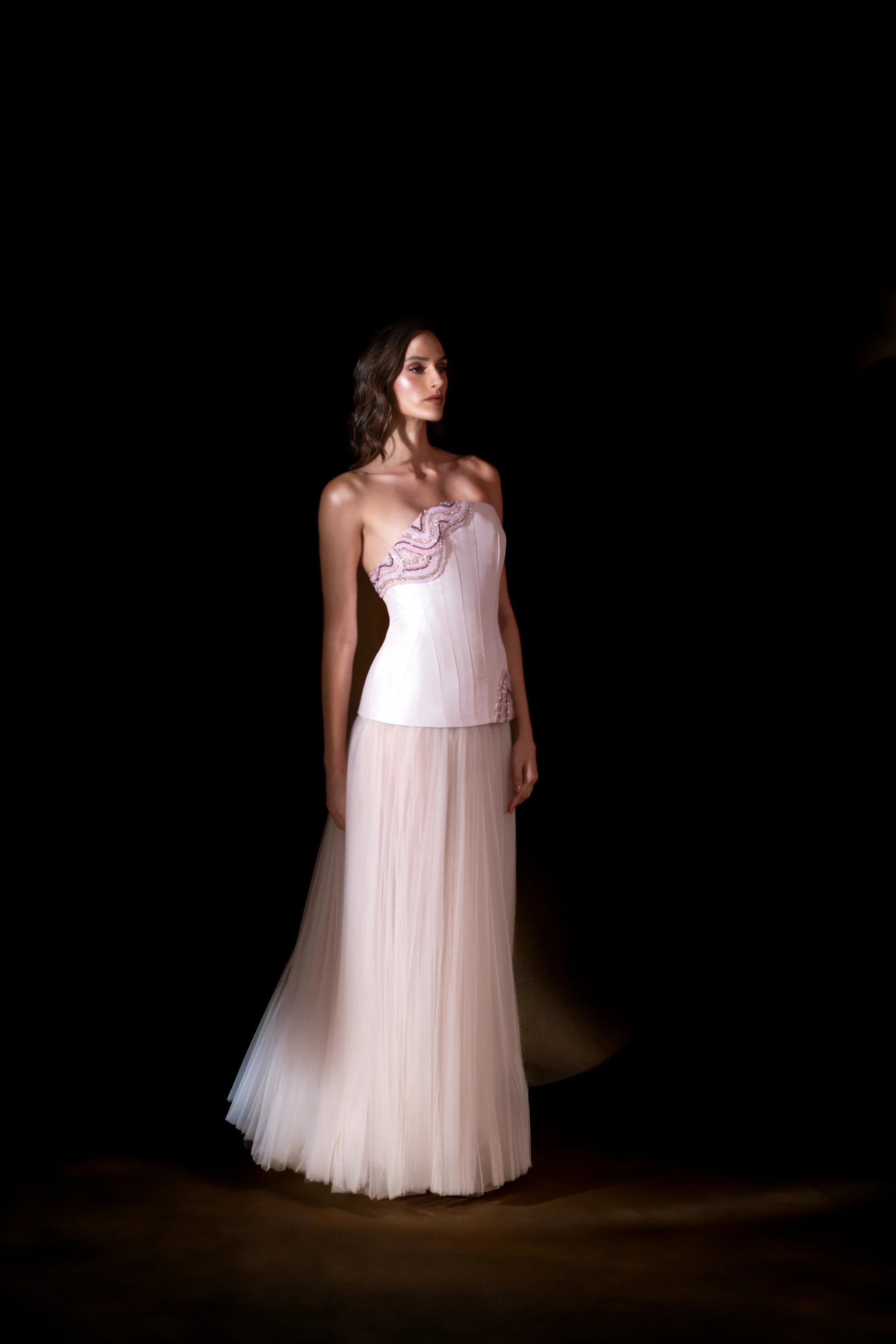 Soraya Tafazoli's dresses stand apart through their attention to detail: delicate embroidery, clean lines, and finishes that reflect couture sensibility. This collection is for women who recognize that true luxury lies in the thoughtful execution of every seam, bead, and responsive design; haute couture made personal and wearable.